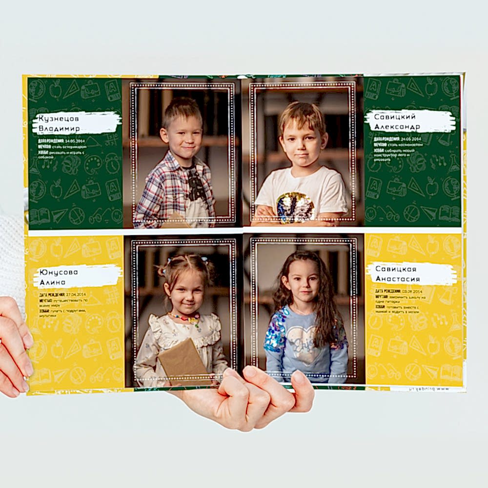 За небольшую доплату вы можете выбрать макет альбома "Эксклюзивный", в Пин-ап будут все отснятые фотографии вашего ребенка! Также благодаря этой опции вы можете выбрать разные альбомы и дизайны